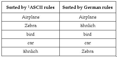 before b, whereas the ASCII order sorts an umlaut after all other letters.