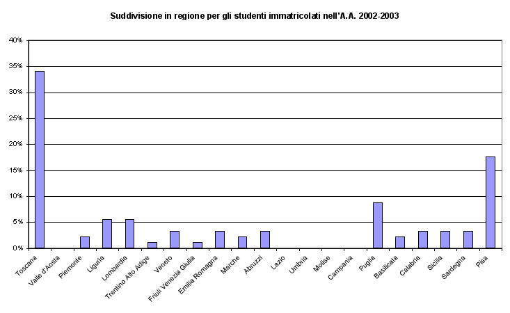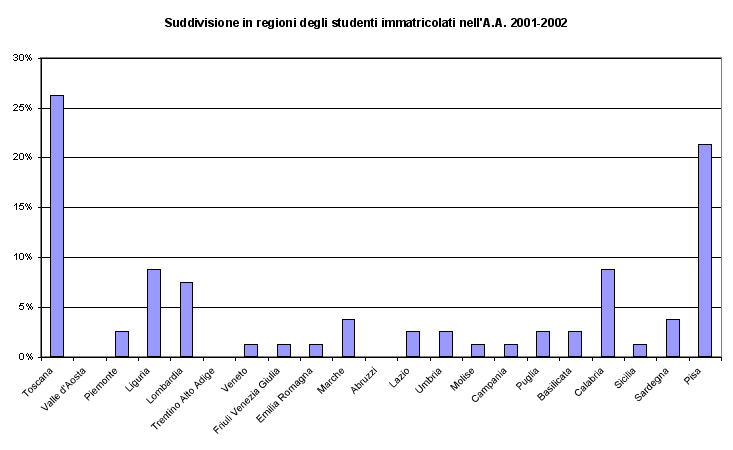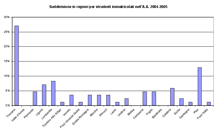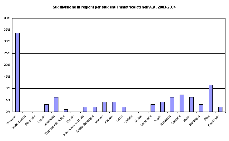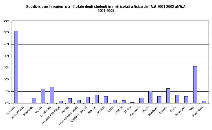 | Provenienza regionale degli studenti iscritti alla Laurea in Fisica.